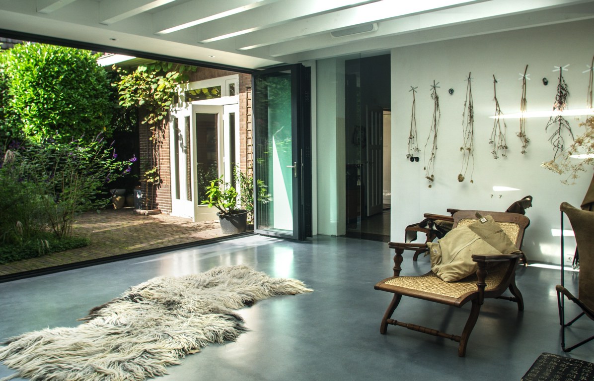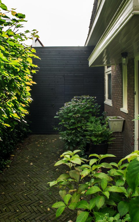 Uitbreiding van het in 1928 gebouwde woonhuis met een vanaf de Nassaulaan ‘onzichtbare’ tuinkamer. Het dak is geschikt gemaakt voor de verbouwing van groente en fruit. De pui naar de tuin kan in zijn geheel open geschoven worden zodat interieur en exterieur in elkaar over gaan.