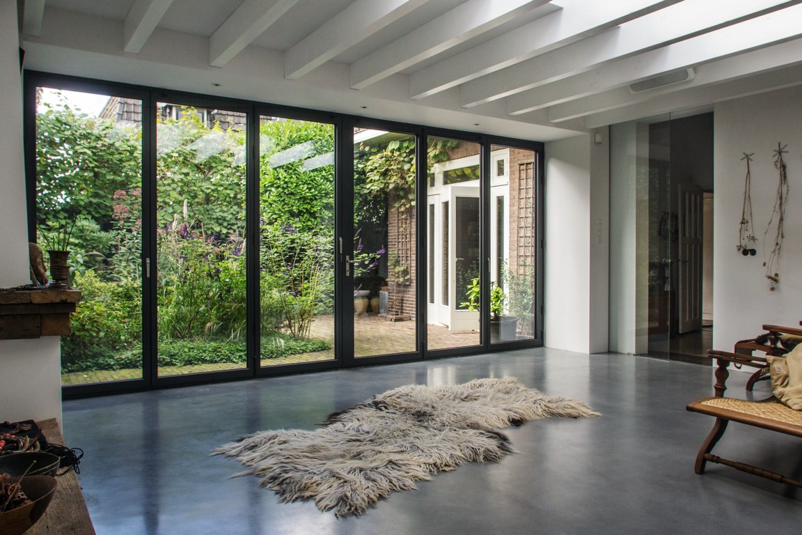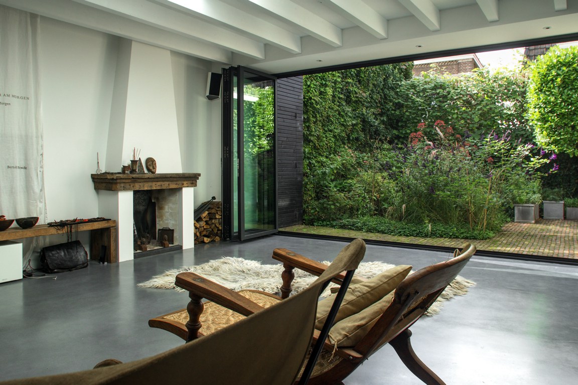 Uitbreiding van het in 1928 gebouwde woonhuis met een vanaf de Nassaulaan ‘onzichtbare’ tuinkamer. Het dak is geschikt gemaakt voor de verbouwing van groente en fruit. De pui naar de tuin kan in zijn geheel open geschoven worden zodat interieur en exterieur in elkaar over gaan.